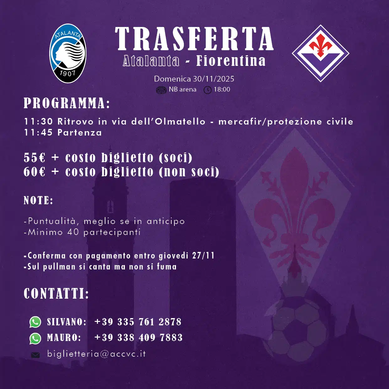 ATALANTA– FIORENTINA 55€/60€ + costo del biglietto minimo 40 partecipanti